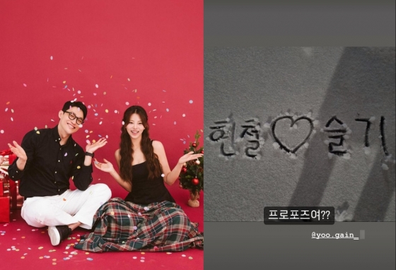 공개된 사진 속엔 유현철이 김슬기를 향한 애정을 담아 '현철♥슬기'란 글을 눈밭 위에 적었다. 이에 김슬기는 감동한 분위기다.