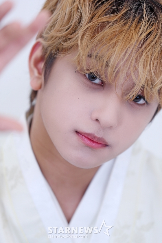한국 필리핀 합작 그룹 호라이즌(HORI7ON) 마커스가 서울 종로구 스타뉴스 사옥에서 진행된 '2023 아시아 아티스트 어워즈 인 필리핀'(2023 Asia Artist Awards IN THE PHILIPPINES, 이하 2023 AAA) 수상 인터뷰 및 설날 한복 인터뷰에 앞서 포즈를 취하고 있다.