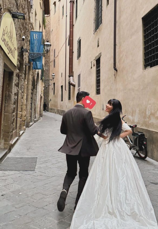 공개된 사진 속 랄랄과 그의 남편은 이탈리아 피렌체에서 각각 웨딩드레스와 턱시도 차림으로 포즈를 취하고 있다. 두 사람의 밝은 에너지가 전해져 이목을 끈다.