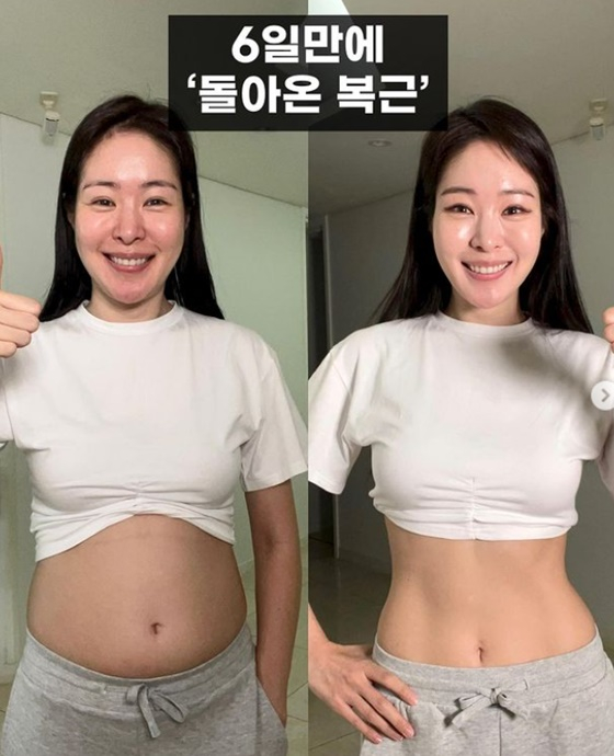 이어 "맘 제대로 먹으려고 부끄럽지만 여러분께 살포시 뱃살도 공개했다"며 "많은 분들의 응원과 기대에 힘입어 '급찐급빠'(급하게 찐 살 급하게 빼기) 완료!!!!!!!!!!!!"라고 밝혔다.