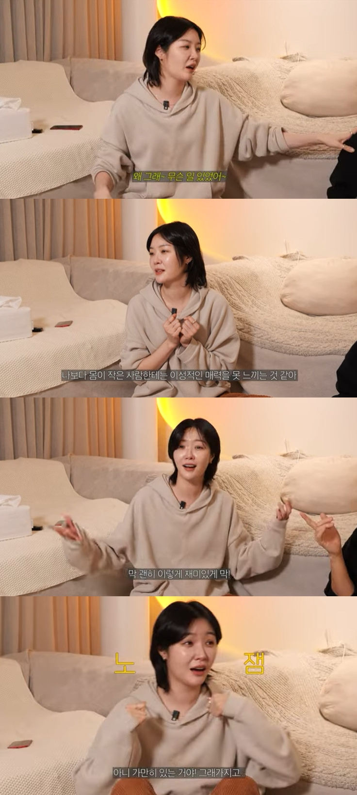 연인을 만나는 적정 횟수에 대해서는 "맨날 만나는 거 좋아하는 스타일이다. 지금 나이가 있으니까 만나면 결혼 전제일 텐데 '일주일에 한 번 보는 게 좋아'라고 하면 '나랑 결혼은 어떻게 해?'라고 물어볼 것 같다"며 "난 무조건 동거는 해봐야 한다 주의다"라고 했다.