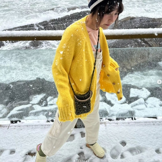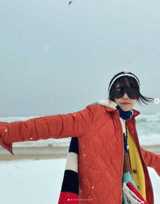 사진 속 서정희는 강릉 바닷가에서 내리는 눈을 맞으며 환하게 미소짓고 있었다.