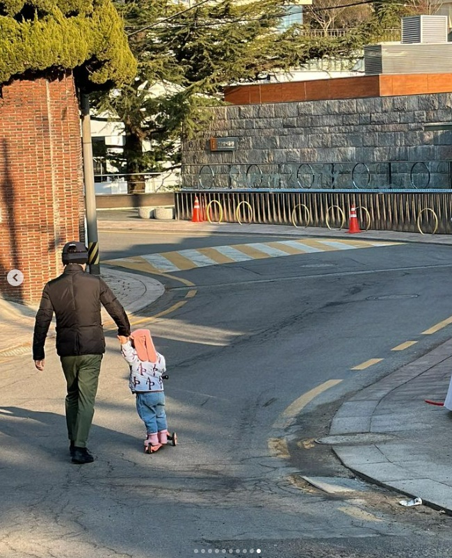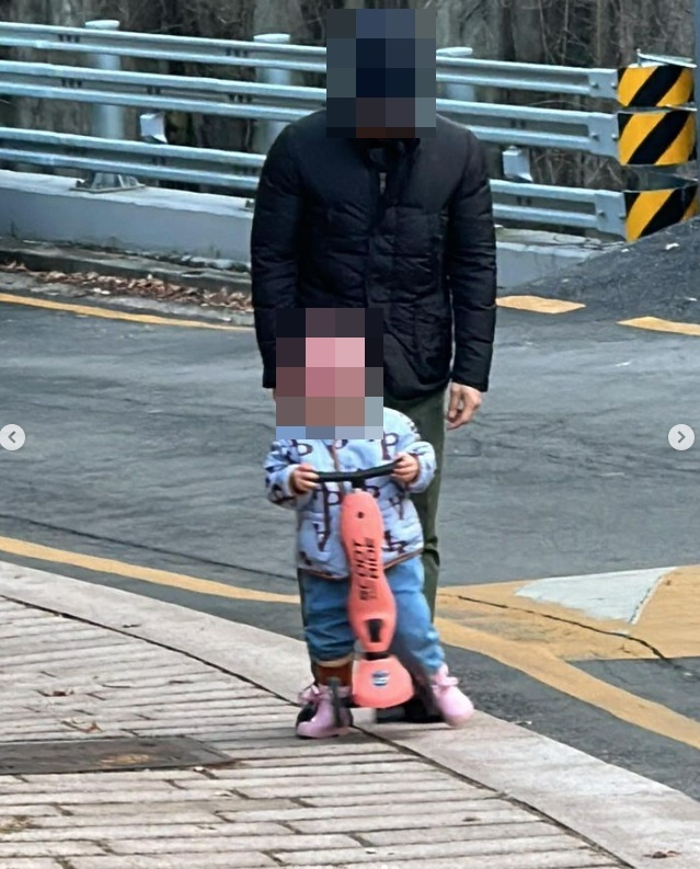 또 다른 사진에선 한지혜의 남편과 딸이 손을 꼭 잡고 킥보드를 타는 모습으로 훈훈한 부녀의 모습도 보였다.