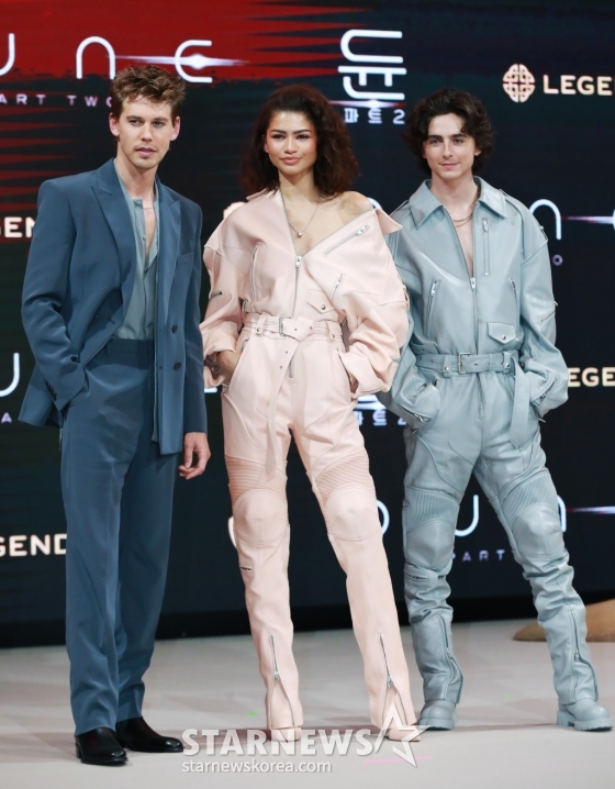 연예방송믿고 보는 '듄: 파트2'[★포토]발행 : 2024.02.21 ・ 14:55이동훈 기자배우 오스틴 버틀러, 젠데이아, 티모시 살라메가 21일 오후 서울 여의도 콘래드 호텔에서 진행된 영화 '듄: 파트2' 내한 컨퍼런스에 참석해 포즈를 취하고 있다. /2024.02.21<저작권자 © 스타뉴스, 무단전재 및 재배포 금지>파트2티모시살라메젠데이아오스틴버틀러스텔란스카스가드드니빌뇌브추천 기사이동훈 기자기자홈좋아요 연예-방송의 인기 급상승 뉴스연예-방송의 최신 뉴스