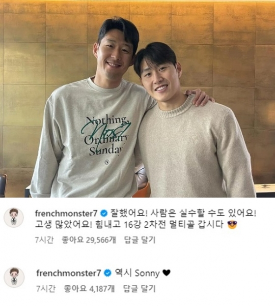 이 게시물에도 파비앙은 "역시 Sonny♥"라고 댓글을 달며 이강인과 손흥민을 응원했다.
