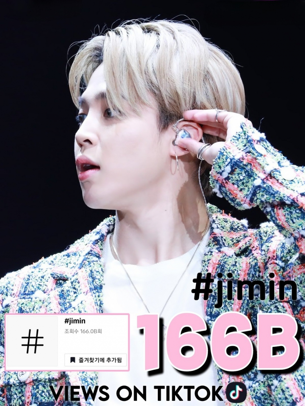 지민의 고유 해시태그 '#jimin'은 글로벌 동영상 플랫폼 틱톡(TikTok)에서 2월 14일 기준 단일 언급량 1660억뷰를 돌파하며 자체 기록을 경신했다.