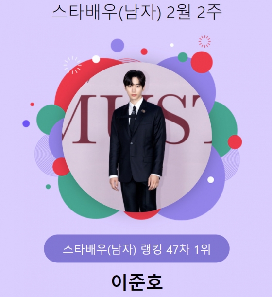 이준호는 2월 15일 오후 3시 1분부터 2월 22일 오후 3시까지 진행된 2월 3주(48차) 스타랭킹 스타배우 남자 랭킹 투표에서 1만 4958표를 얻어 1위를 지켰다.