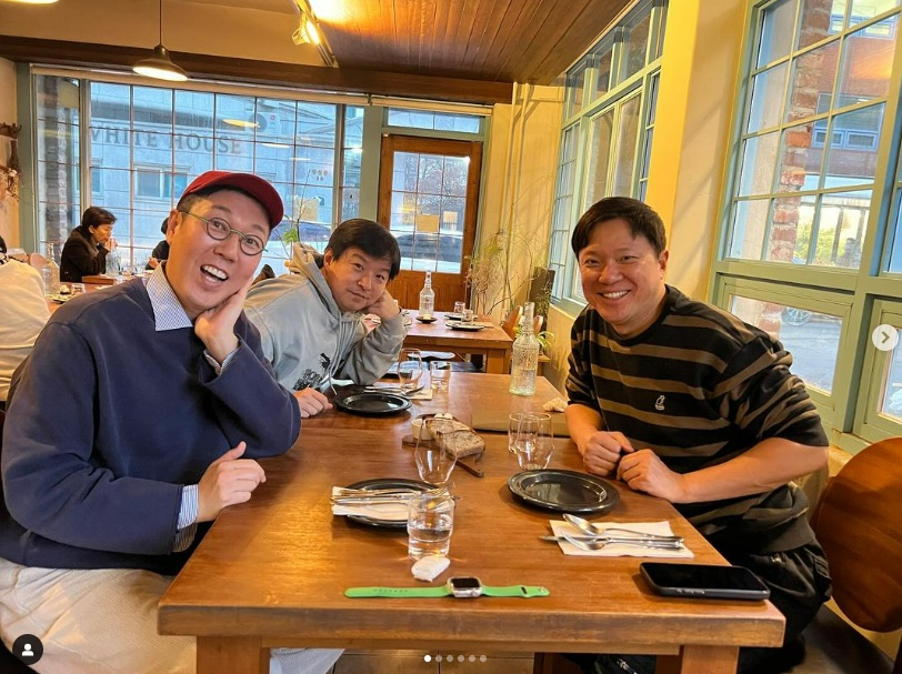 사진 속에는 김영철이 김생민, 정성화와 만나 즐겁게 식사하는 모습이 담겨 있었다.
