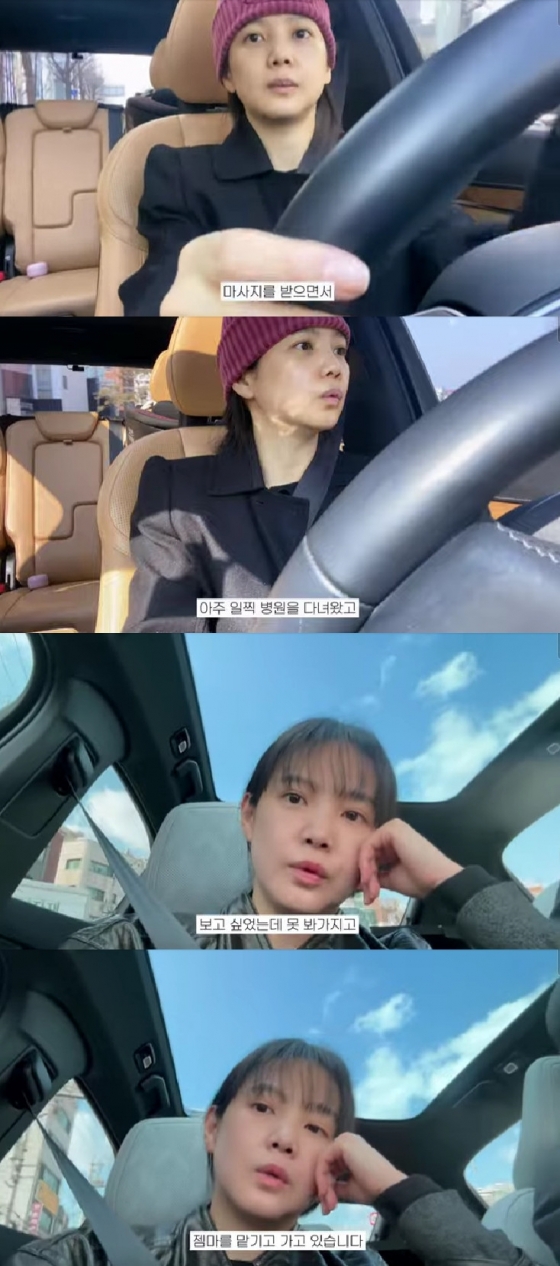 윤승아는 마사지를 받기 위해 차를 타고 이동했다. 그는 "젬마(아들)가 생애 첫 감기에 걸려서 일주일 넘게 아파서 오늘도 오전에 아주 일찍 병원을 다녀왔다. 많이 호전됐다고 하더라. 생애 첫 감기라서 코가 막혀서 숨을 잘 못 쉬니까 분유 먹을 때 많이 울더라. 해줄 수 있는 게 없어서 참 안쓰러웠다"고 말했다.