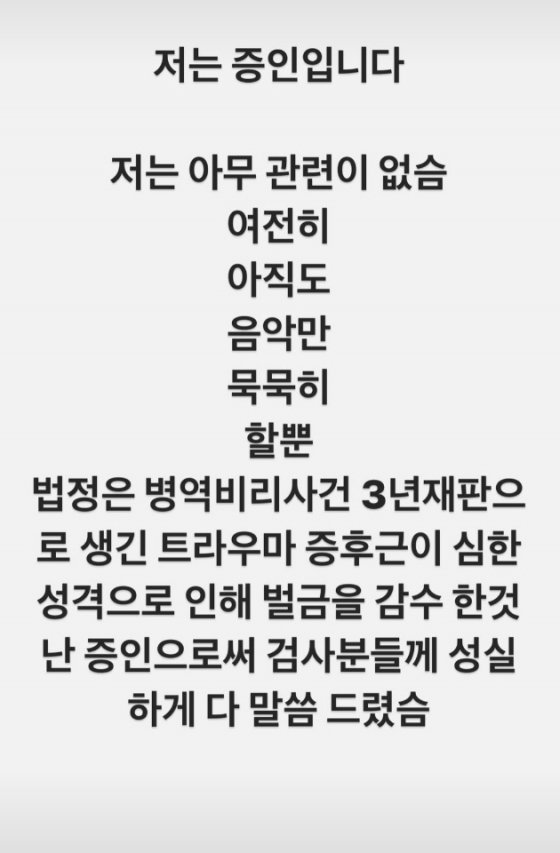 증인 출석을 거부한 이유가 다름 아닌 병역 기피 사건으로 법정을 오가며 생긴 트라우마 때문이라는 것. MC몽은 "난 증인으로서 검사분들께 성실하게 다 말씀드렸다"고 강조했다. 재판이 아닌 검찰 조사에서 이미 관련 의혹에 대해 모두 소명했다는 것으로 해석된다.
