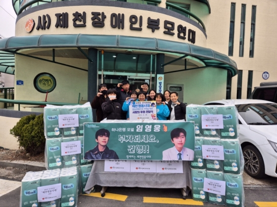 제천 영웅시대는 이에 더해 임영웅의 하나금융그룹(하나은행) CF 촬영을 기념해 제천시장애인부모연대(지회장 심명숙)에 후원 물품을 전달했다.