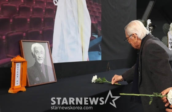 5일 서울 종로구 대학로 마로니에공원 야외극장에서 고인의 장례가 대한민국연극인장으로 엄수됐다. 이날 오전 9시 영결식에는 동료 배우들과 유족들이 참석해 고인의 마지막 길을 배웅했다.