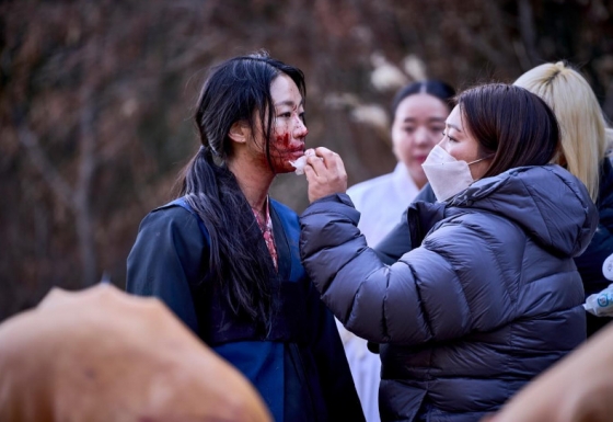 공개된 사진 속엔 김고은이 얼굴에 경문을 가득 쓴 모습은 물론 영화 속 대살굿 장면에서 강렬히 보인 피 분장 현장까지 담겨있다. 특히 경문이 적혀있는 사진엔 긴박했던 감정이 모두 드러나 이목을 집중시킨다.