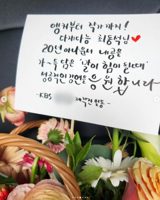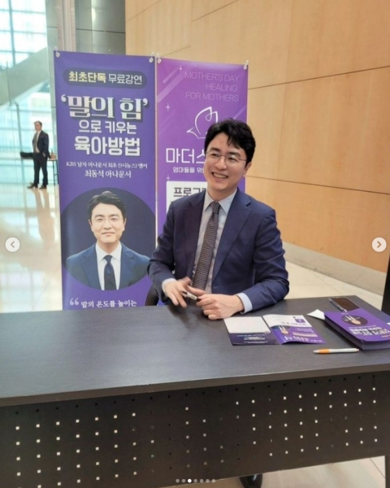 이와 함께 최동석은 KBS 아나운서 선배 손미나와 만난 모습, '말의 힘으로 키우는 육아 방법'이란 주제로 강연에 나선 모습의 사진을 공개했다. KBS 제작진은 '앵커부터 작가까지 다재다능 최동석님, 성공적인 강연을 응원합니다', '빛이 나는 최동석'이라며 꽃다발 등을 선물했다.