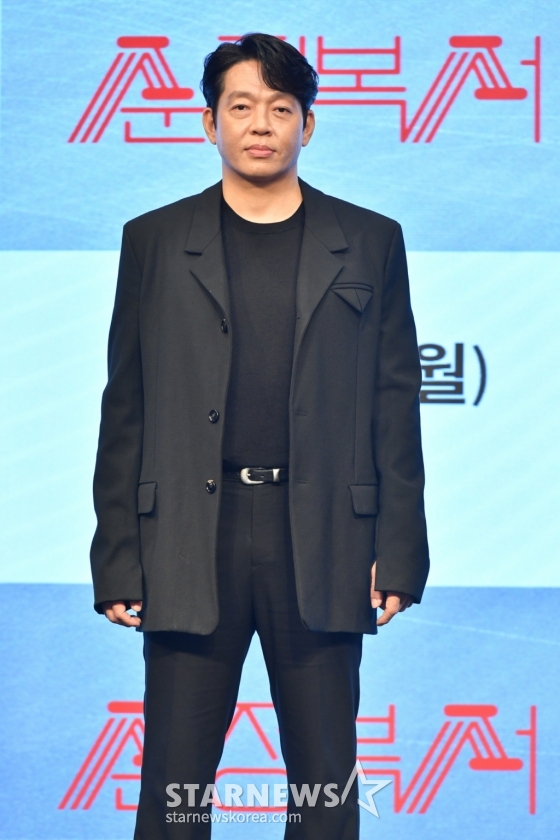 배우 박지환이 21일 오후 서울 구로구 디큐브시티 더 세인트에서 진행된 KBS2 월화드라마 '순정복서' 제작발표회에 참석해 포즈를 취하고 있다. '순정복서'는 사라진 천재 복서 이권숙(김소혜 분)과 냉혈한 에이전트 김태영(이상엽 분)의 인생을 건 승부조작 탈출기를 그린다. 추종남 작가의 소설 '순정복서'를 원작으로 했다. 21일 오후 9시 50분 첫 방송된다. / 사진제공 = KBS /사진=김창현