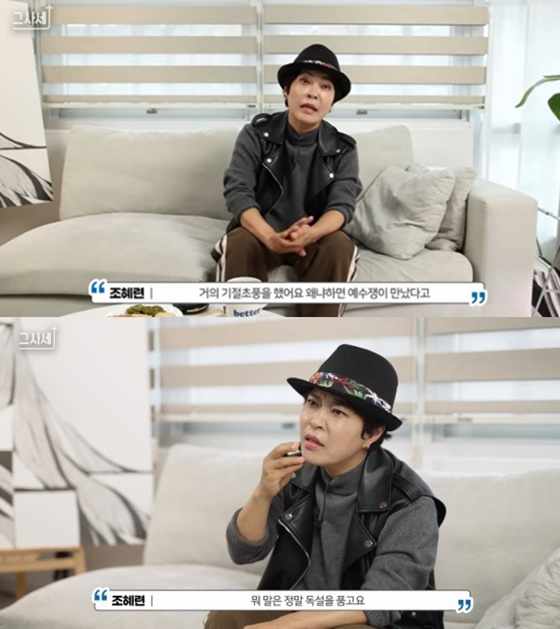 또한 조혜련은 과거 나약한 사람이었다고 털어놨다. 그는 "예전에는 맨날 폭탄주를 말고, 담배를 피우며 독설을 품었다. 머릿속에는 항상 악한 것들로 가득 차 있었다. 하지만 종교 덕분에 크게 잘못되는 길을 막고 있다"고 전했다.