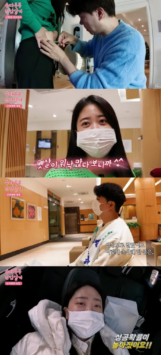 이어 "난포가 잘 자라고 있는지 초음파 보니까 8개 정도 자랐는데 더 필요하다고 하더라. 과배란 주사가 한 개가 더 추가됐다"며 한숨을 쉬었다. 이 사실을 안 박수홍은 속상함을 감추지 못했다.