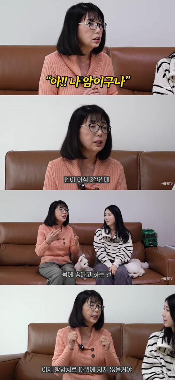 사유리 어머니는 투병 이후 달라진 변화도 밝혔다. 그는 "식생활을 바꿨다"며 "몸에 좋다는 걸 많이 먹기 시작했다. 비타민과 칼슘도 먹기 시작했다"고 전했다.