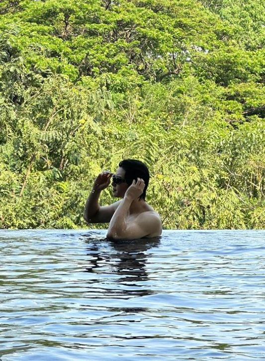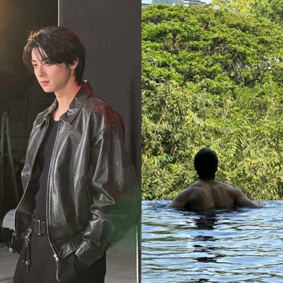 차은우는 11일 태국 방콕의 한 야외 수영장에서 수영을 즐기고 있는 자신의 모습이 담긴 사진과 영상을 공개했다.