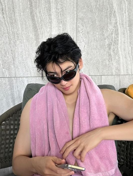 여기에 차은우는 핑크색 바디 타월을 걸치고 얼굴 천재로서 매력도 뽐냈다.