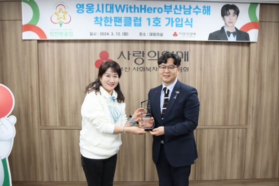 이어 "부산 최초의 팬클럽 나눔리더스클럽 가입에 이어 착한팬클럽 1호에 이름을 올린 '영웅시대 With Hero 부산남수해' 회원분들께 진심으로 감사의 마음을 전한다"며 "영웅시대 팬들의 따뜻한 마음이 지역사회 곳곳에 도움이 되고 있다. 이러한 행보가 다른 팬클럽에게도 큰 영감을 줄 것 같다"고 했다.