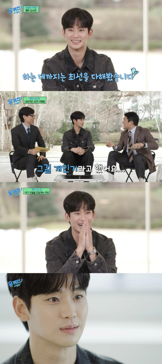 배우 김수현이 드라마 '눈물의 여왕'에 이어 예능 프로그램 '유 퀴즈 온 더 블럭'까지 섭렵했다.