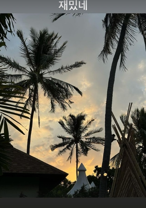 혜리가 공개한 사진은 야자수와 노을로 물든 하늘이 보인다.