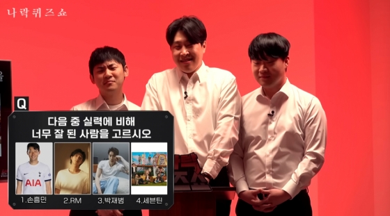 이날 미미미누는 손흥민, 방탄소년단 RM, 박재범, 세븐틴을 언급하며 "다음 중 실력에 비해 너무 잘 된 사람을 고르시오"라고 물었다.