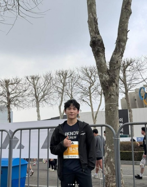 임시완은 수많은 인파와 함께 달리기를 시작한 모습, 마라톤 완주 후 자신감 넘치게 엄지를 든 모습 등을 인증샷으로 보여줬다.