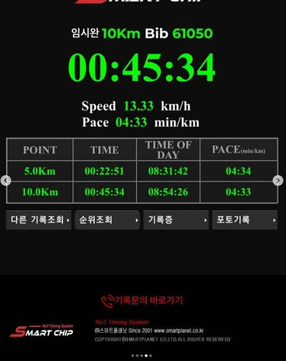 사진 속에는 임시완이 2024 서울마라톤 10km 코스를 완주한 모습이 있었다. 그는 해당 코스를 45분 만에 완주해 눈길을 끌었다.