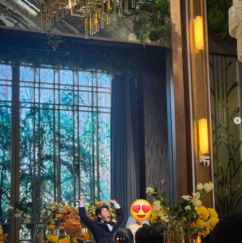 홍진호는 턱시도를 입고 신부 옆에서 만세를 외치는 모습으로 유쾌한 결혼식 현장을 자랑했다. 이밖에 그는 흐뭇하게 신부를 맞이하는 모습 등 새신랑의 기쁨을 전했다.