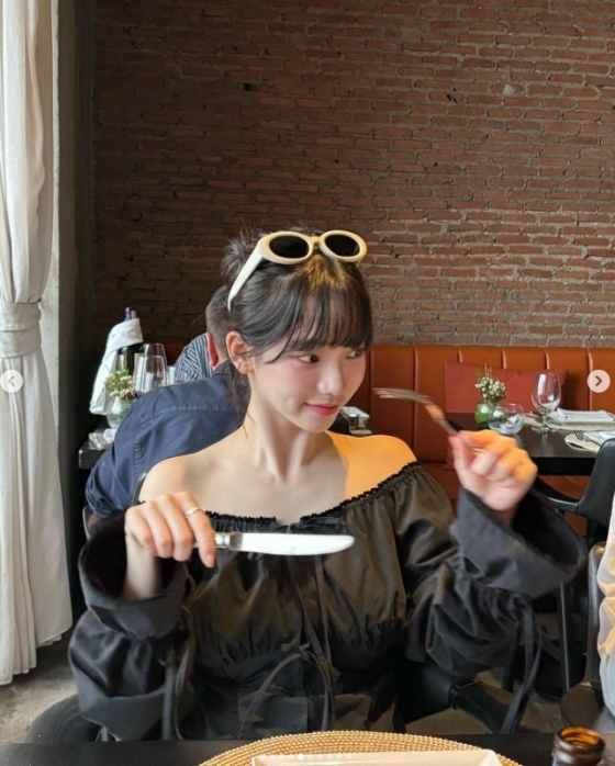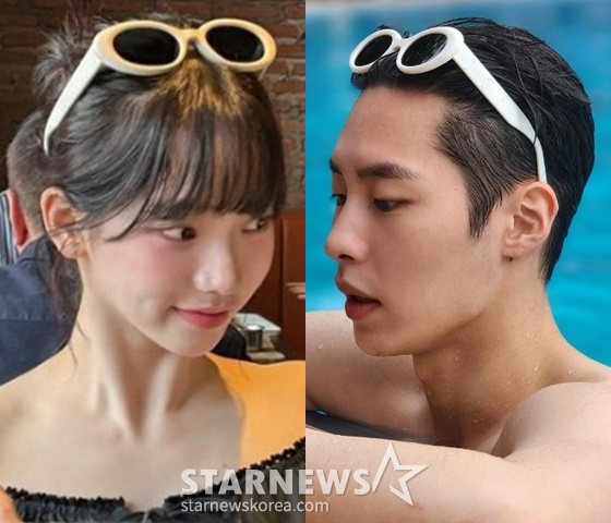 이 가운데 카리나는 하얀색 테가 특징인 선글라스를 착용해 눈길을 끌었다. 이 선글라스는 이재욱이 지난해 2월 착용하고 자신의 계정에 공개했던 아이템과 같은 것.