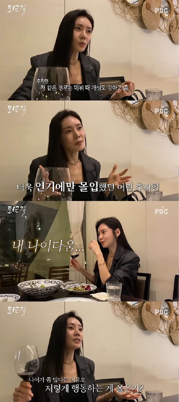 또한 추자현은 "저는 되게 꼰대"라고 고백하며 "20대, 30대를 거쳐서 40대를 살고 있는데 20대 친구들처럼 행동할 수는 없다. '라떼는 말이야'라고 하는 순간 꼰대라고 하는데 나는 나 때의 이야기를 해주고 싶은 거다. 우리는 그 시대에 그렇게 배웠다는 걸 설명해 주고 싶은 거다. 나 때가 다 맞았다는 게 아니라 좀 달랐다는 걸 알려주고 싶은 거다. 서로 이해하자는 것"이라고 전했다.
