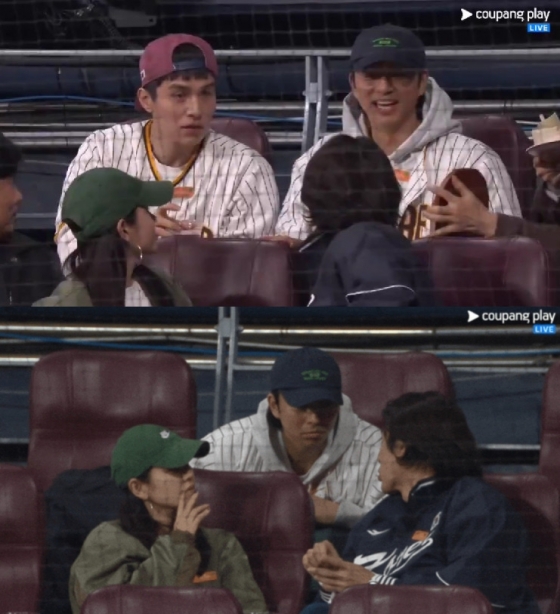 또한 두 사람의 뒷 좌석에는 절친한 사이인 배우 이동욱, 공유 또한 샌디에이고 파드리스 유니폼을 입고 포착돼 시선을 끌었다. 현빈, 손예진 부부는 뒤에 앉은 공유, 이동욱과 다정하게 대화를 나누며 친분을 자랑하기도. 현빈과 공유, 이동욱은 야구팬 연예인으로 유명하다.