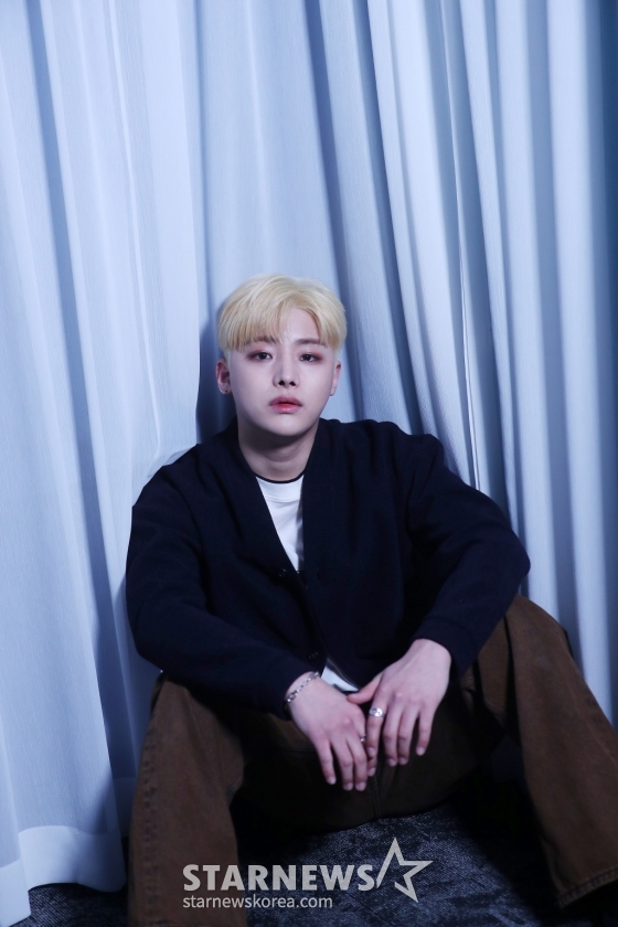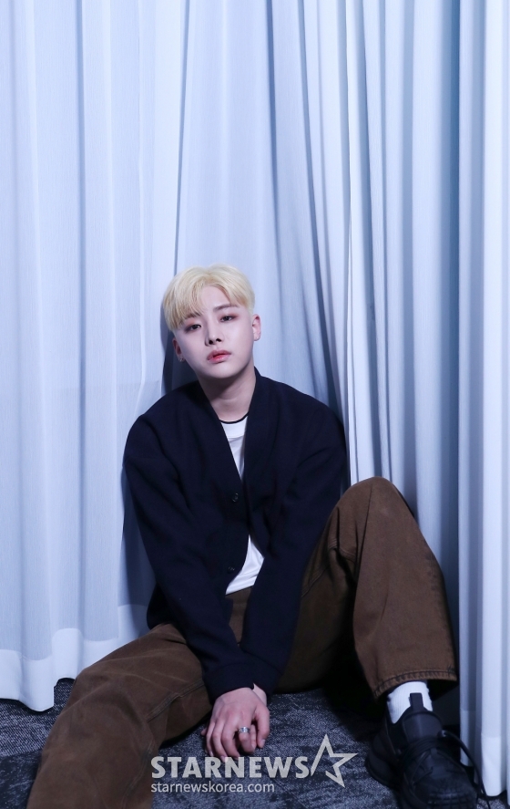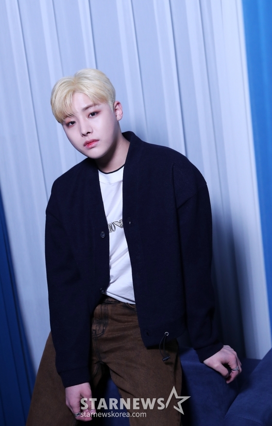 그룹 소디엑(XODIAC) 렉스가 서울 종로구 스타뉴스 사옥에서 진행된 두 번째 싱글 앨범 '소울 데이'(XOUL DAY) 발매 기념 인터뷰에 앞서 포즈를 취하고 있다.