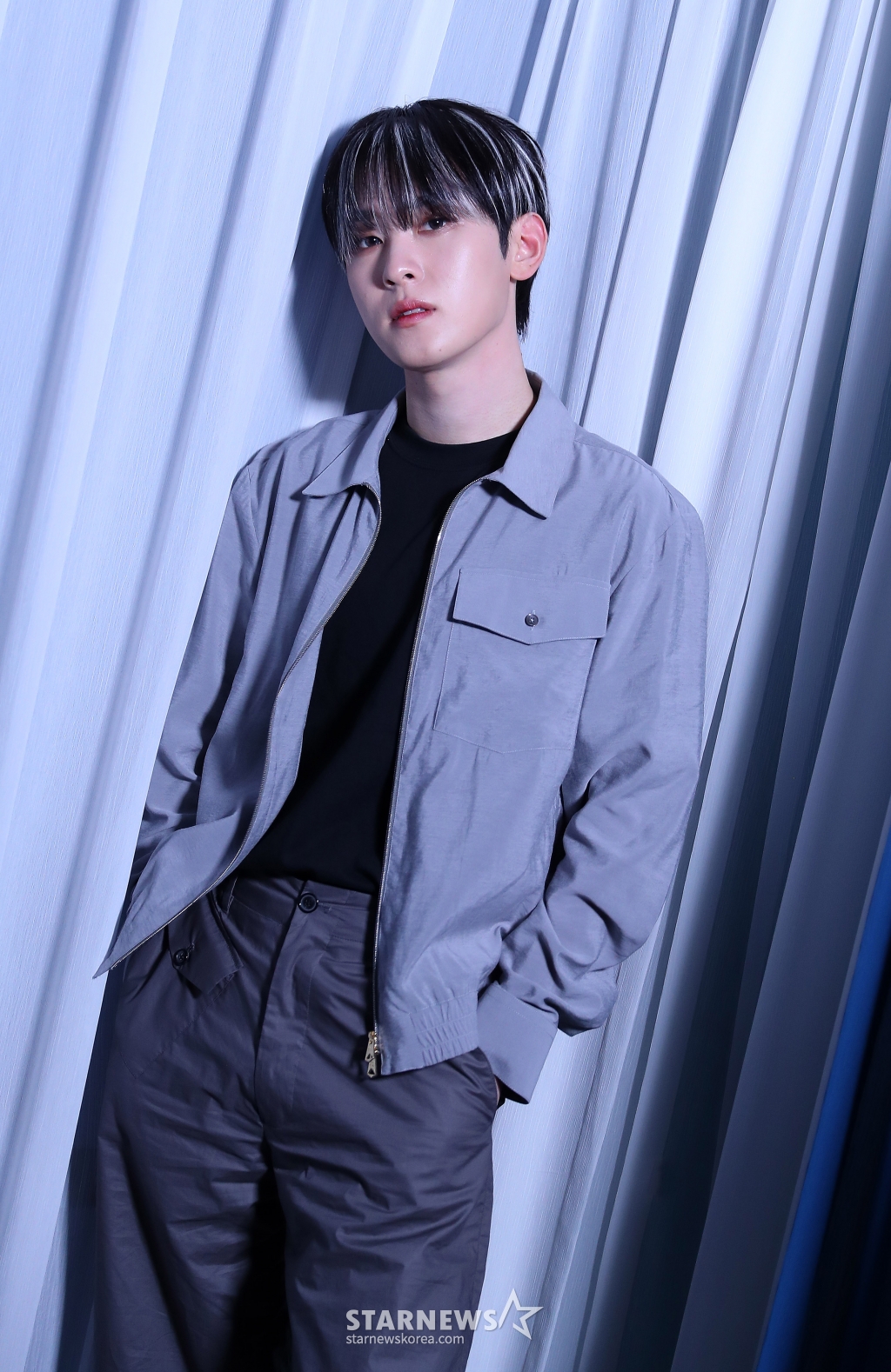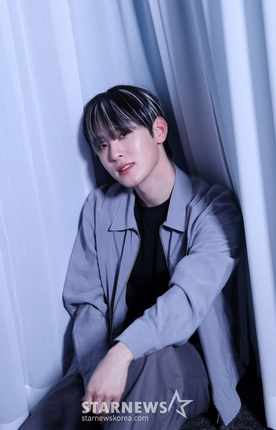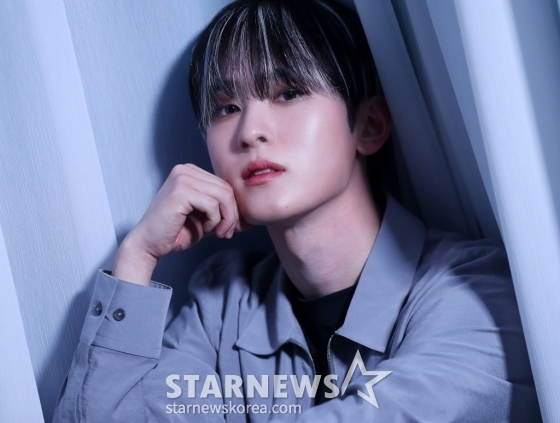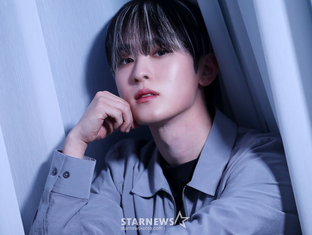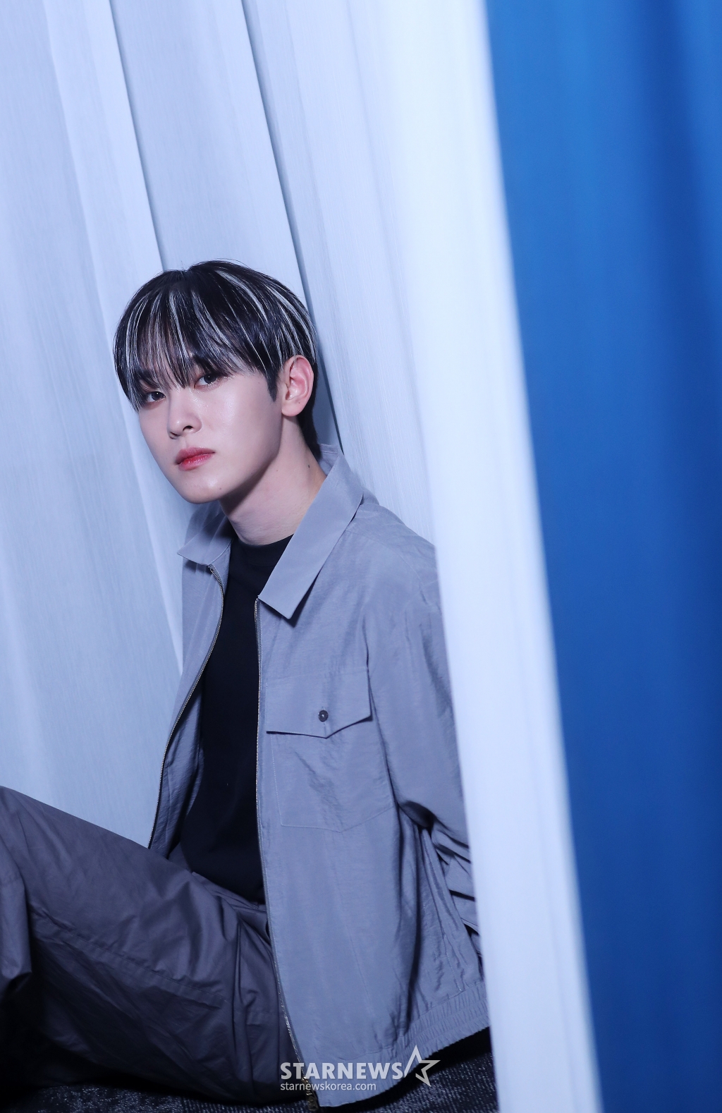 그룹 소디엑(XODIAC) 현식이 서울 종로구 스타뉴스 사옥에서 진행된 두 번째 싱글 앨범 '소울 데이'(XOUL DAY) 발매 기념 인터뷰에 앞서 포즈를 취하고 있다.