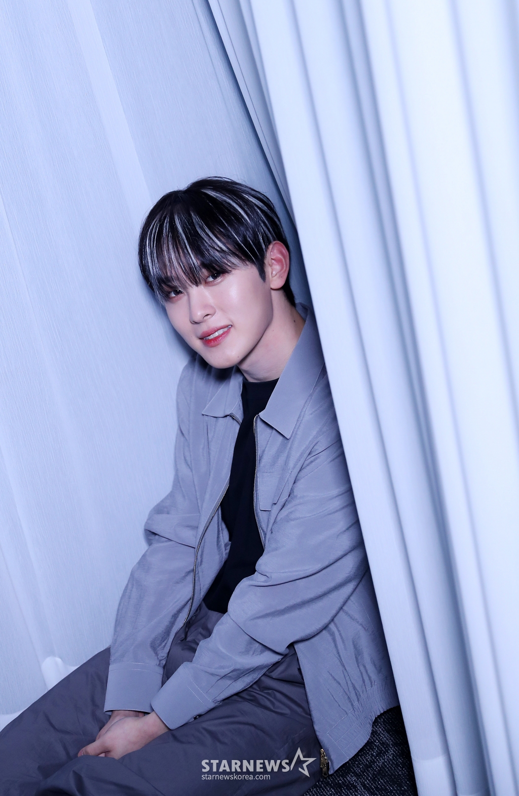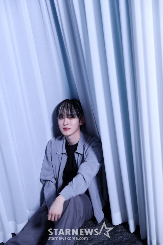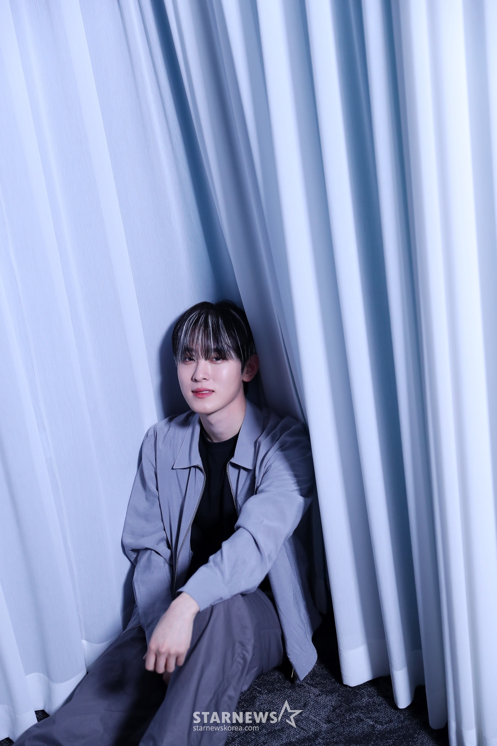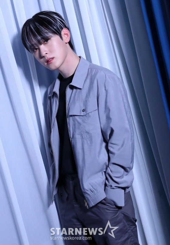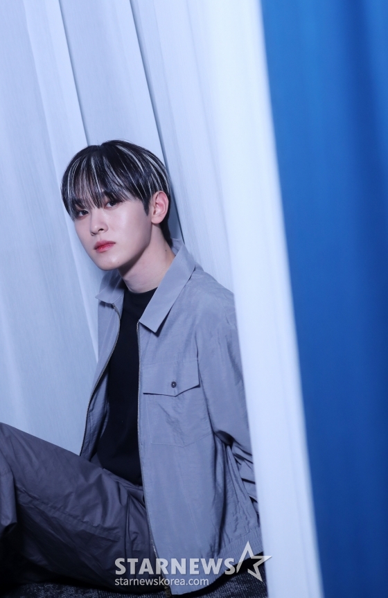 그룹 소디엑(XODIAC) 현식이 서울 종로구 스타뉴스 사옥에서 진행된 두 번째 싱글 앨범 '소울 데이'(XOUL DAY) 발매 기념 인터뷰에 앞서 포즈를 취하고 있다.