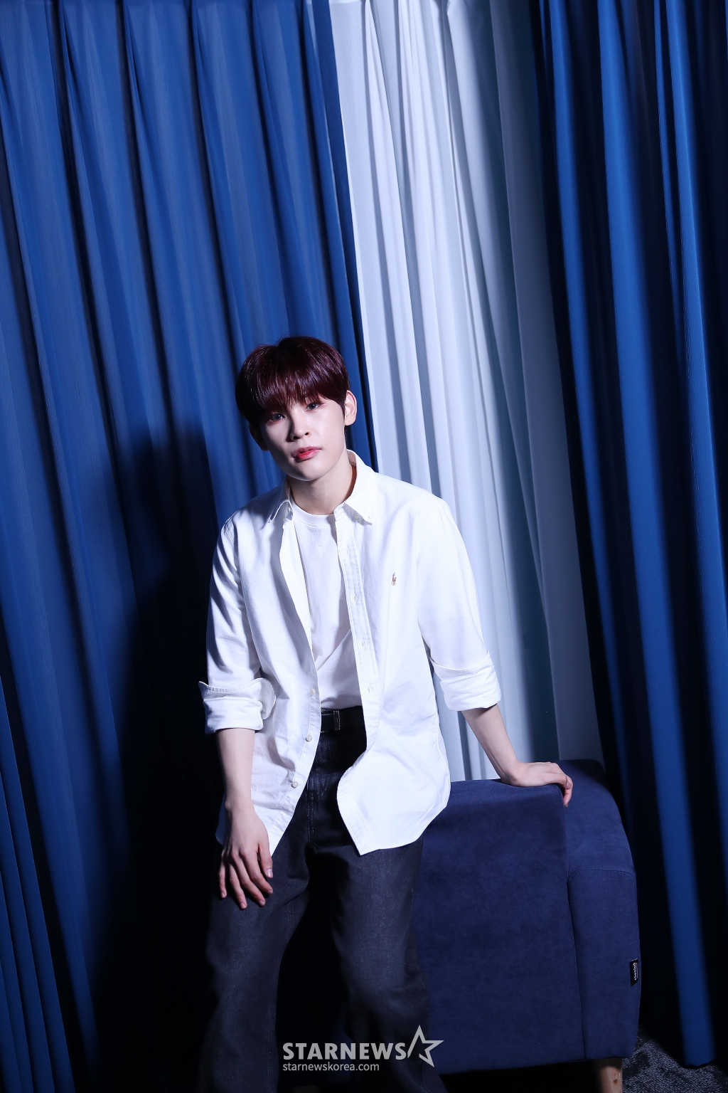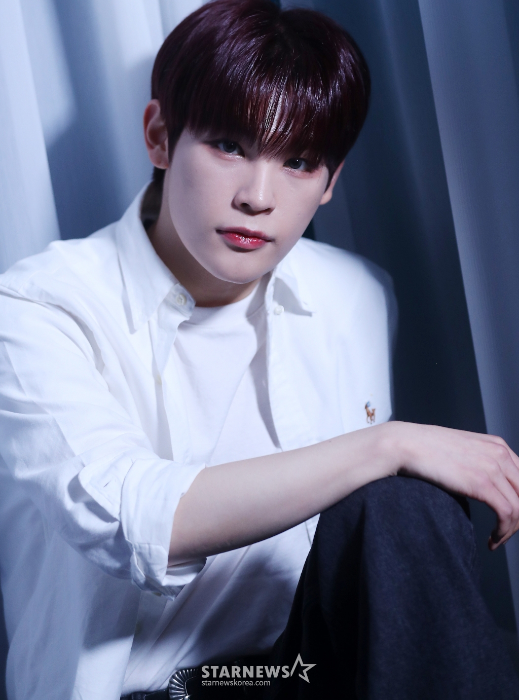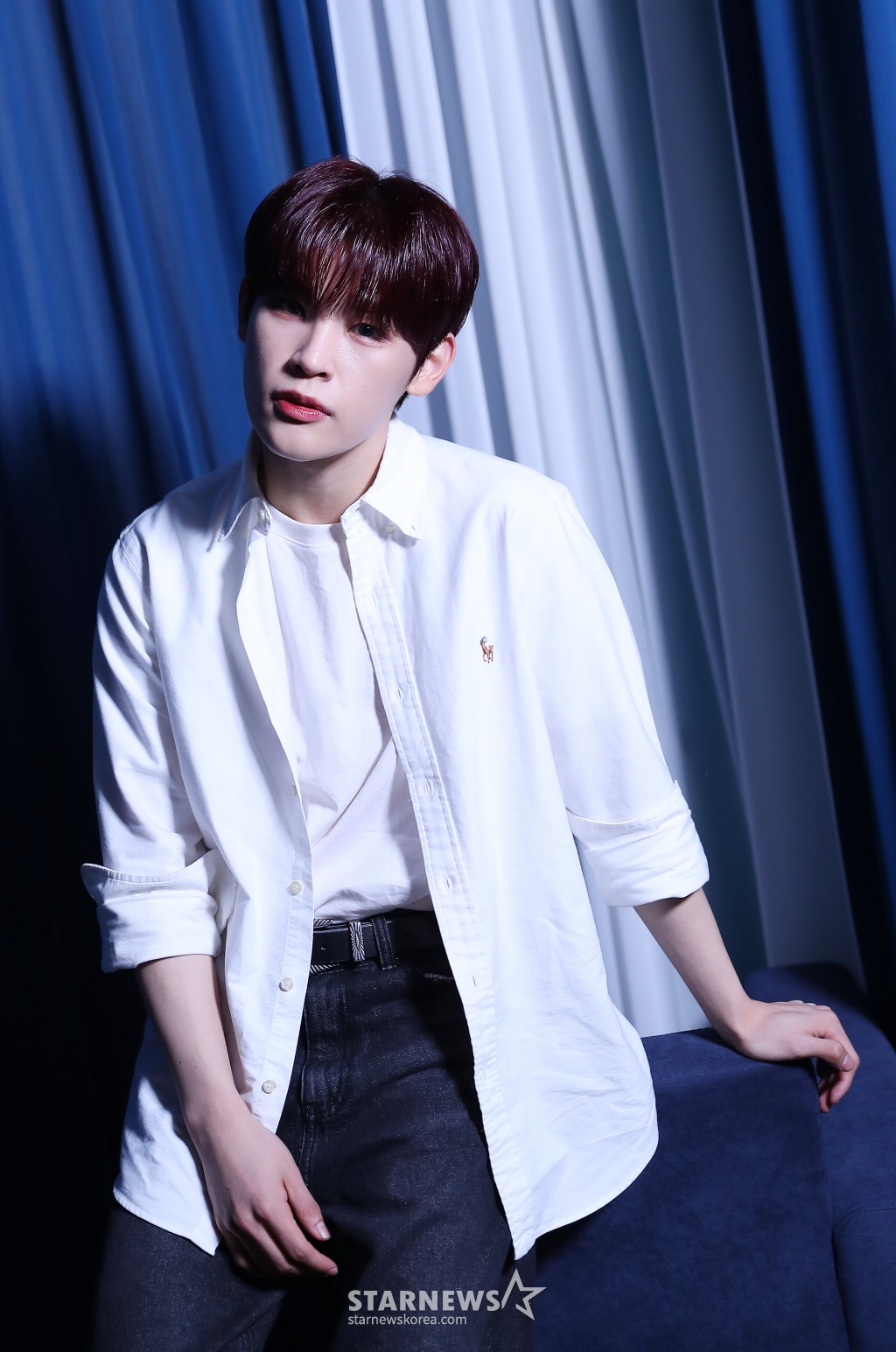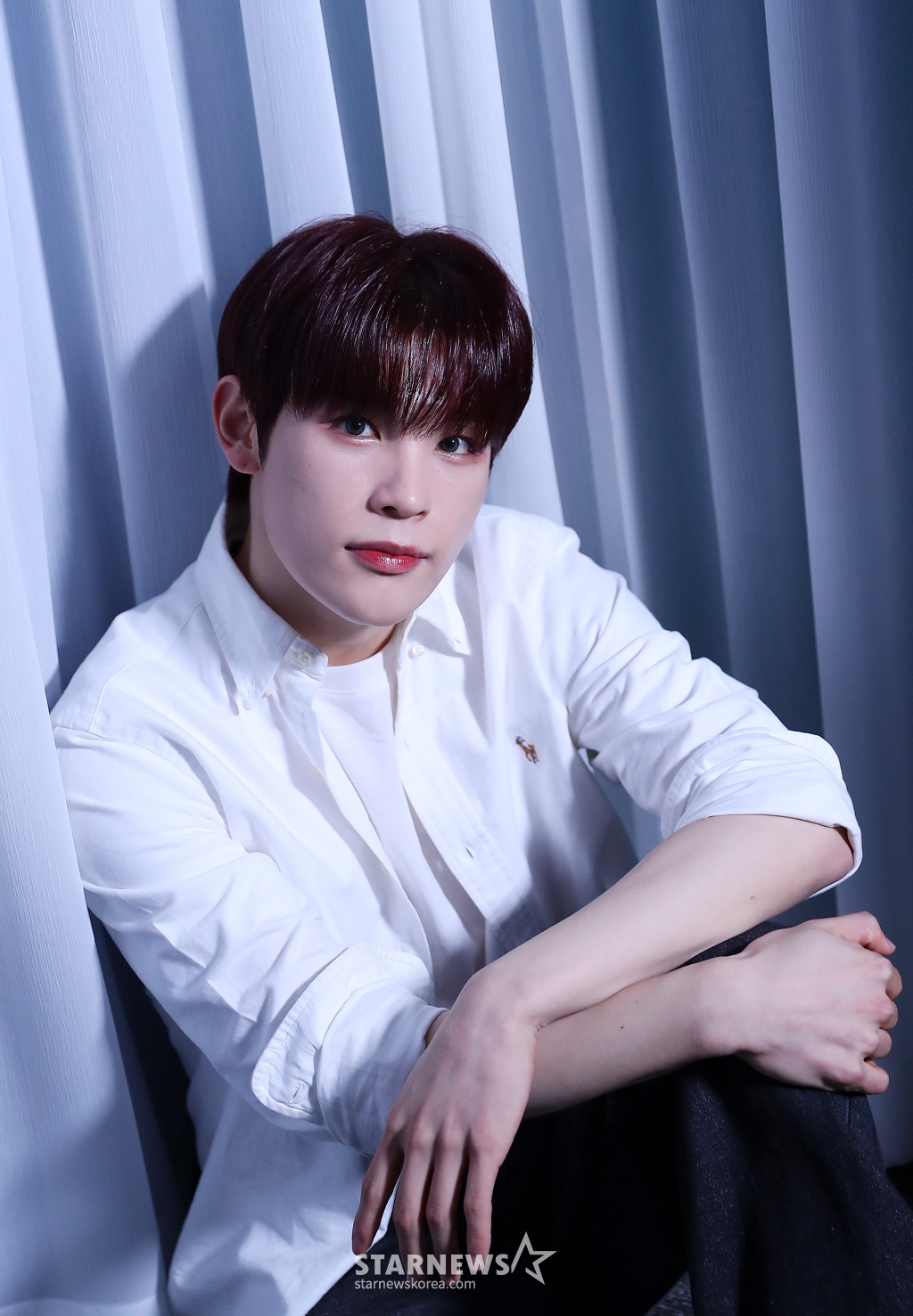 그룹 소디엑(XODIAC) 규민이 서울 종로구 스타뉴스 사옥에서 진행된 두 번째 싱글 앨범 '소울 데이'(XOUL DAY) 발매 기념 인터뷰에 앞서 포즈를 취하고 있다.