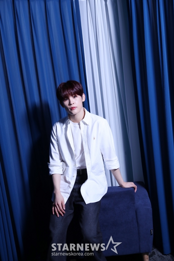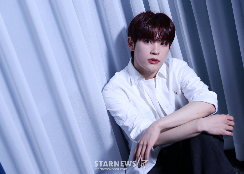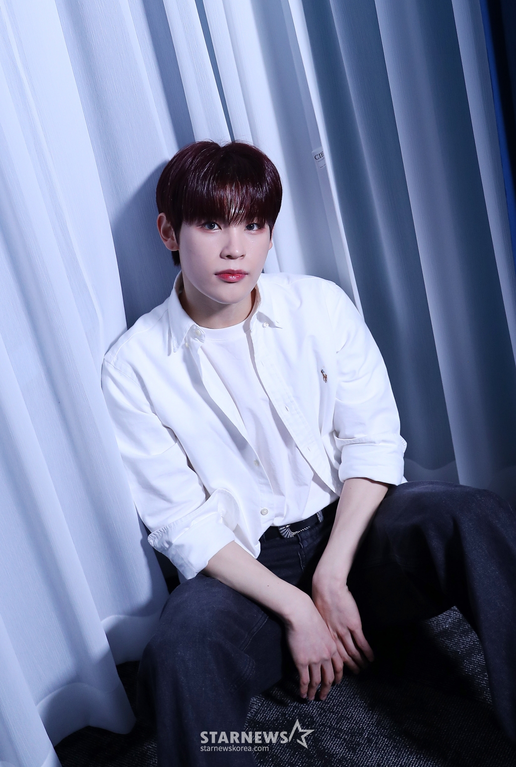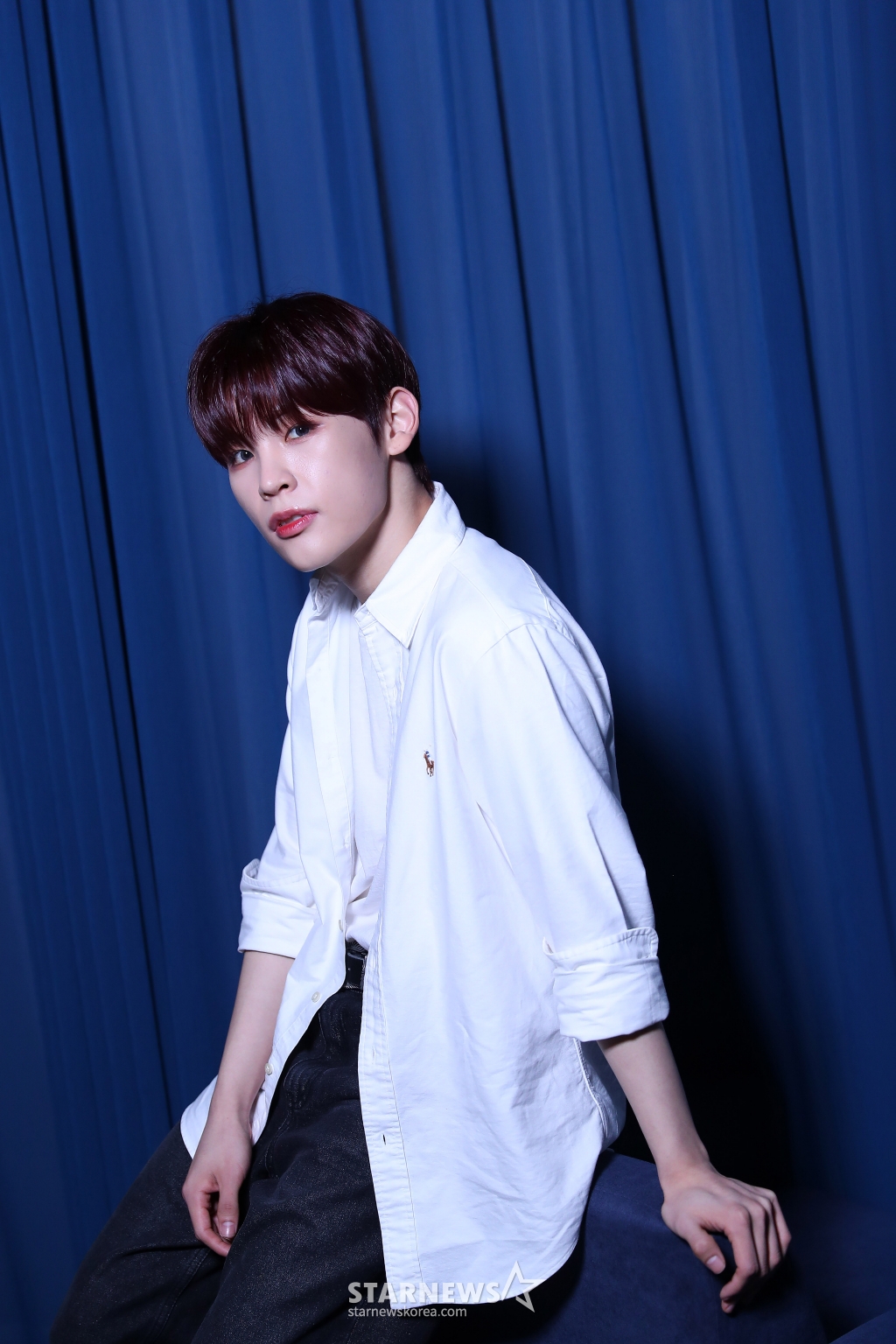 그룹 소디엑(XODIAC) 규민이 서울 종로구 스타뉴스 사옥에서 진행된 두 번째 싱글 앨범 '소울 데이'(XOUL DAY) 발매 기념 인터뷰에 앞서 포즈를 취하고 있다.