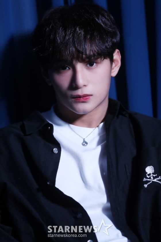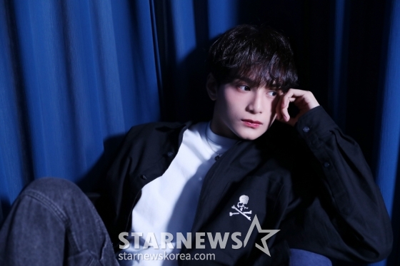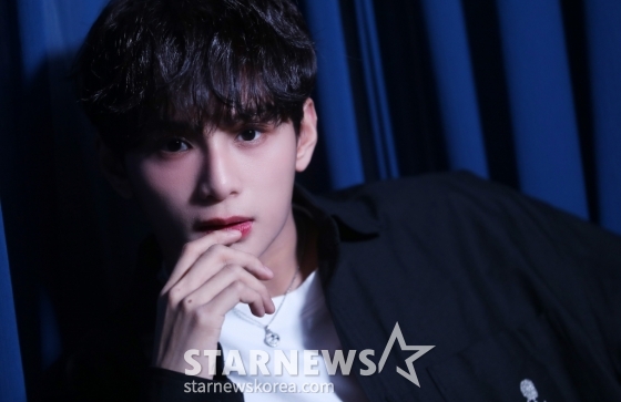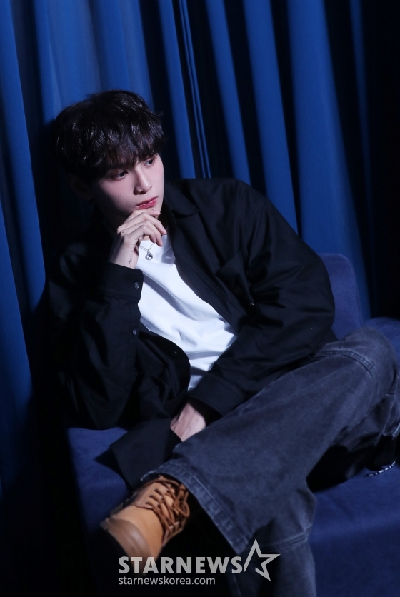 그룹 소디엑(XODIAC) 자얀이 서울 종로구 스타뉴스 사옥에서 진행된 두 번째 싱글 앨범 '소울 데이'(XOUL DAY) 발매 기념 인터뷰에 앞서 포즈를 취하고 있다.