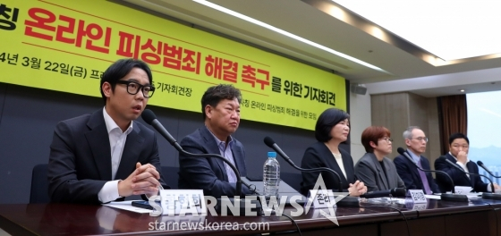 22일 오후 서울 중구 한국프레스센터에서 '유명인 사칭 온라인 피싱범죄 해결을 위한 모임'(이하 '유사모')의 유명인 온라인 피싱범죄 해결 촉구를 위한 기자회견이 개최됐다.
