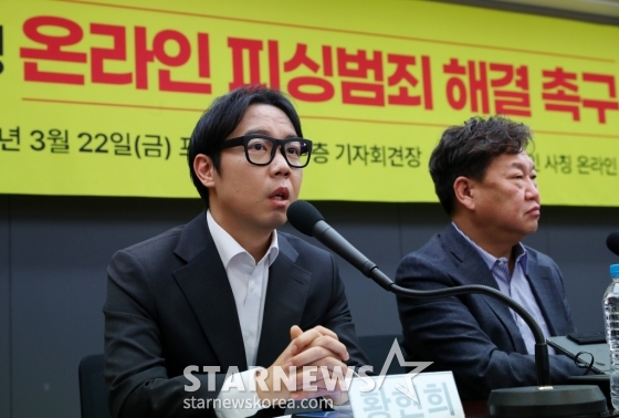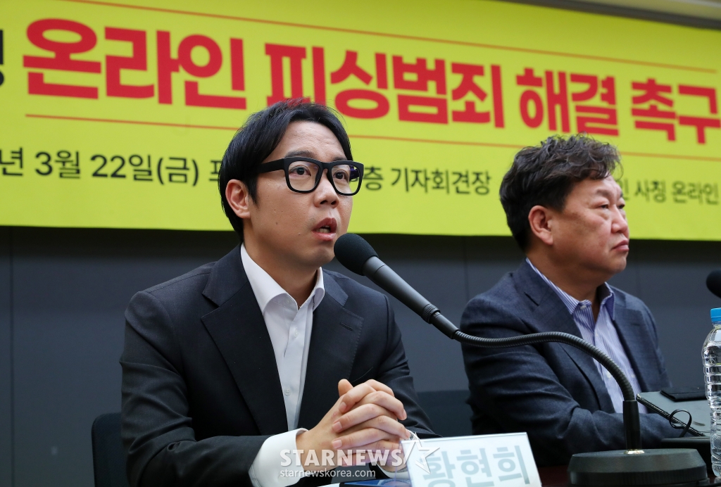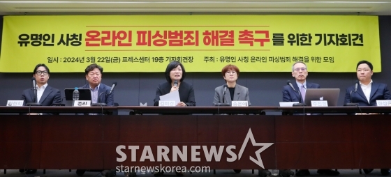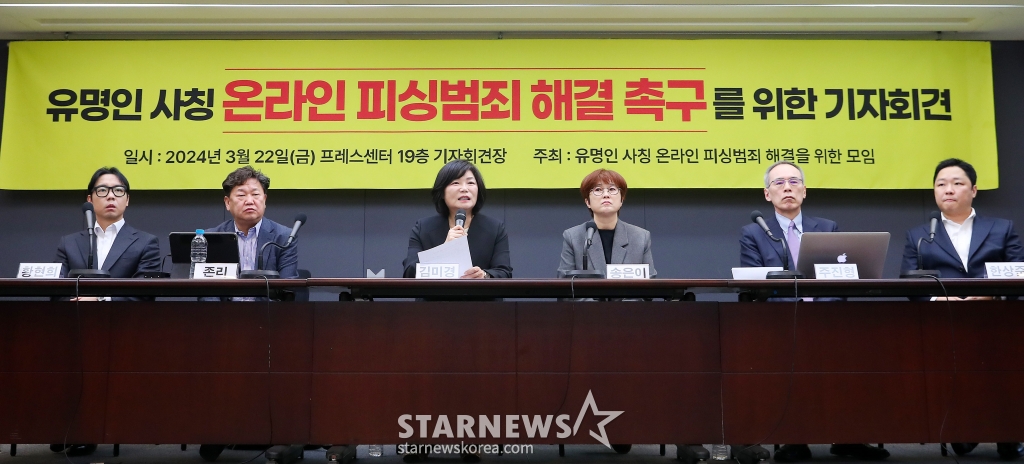 22일 오후 서울 중구 한국프레스센터에서 '유명인 사칭 온라인 피싱범죄 해결을 위한 모임'(이하 '유사모')의 유명인 온라인 피싱범죄 해결 촉구를 위한 기자회견이 개최됐다.