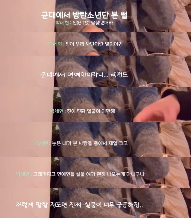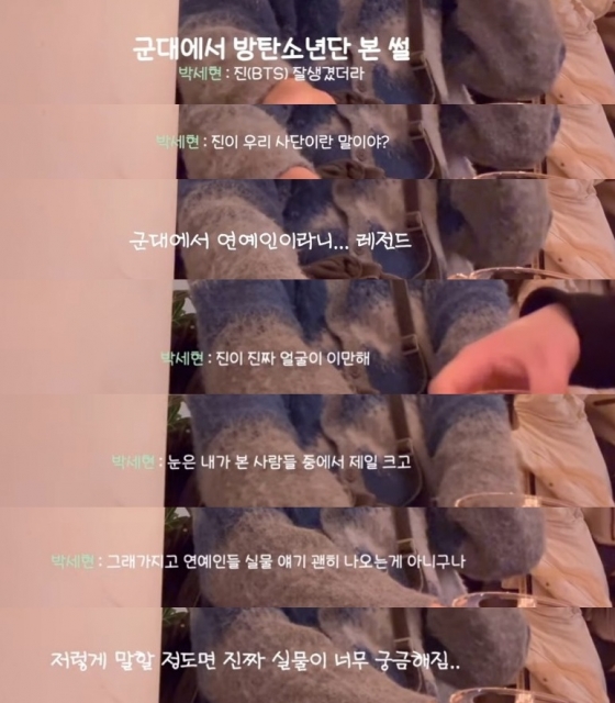 방탄소년단(BTS) 진을 군대에서 본 실물 후기가 관심을 끈다.