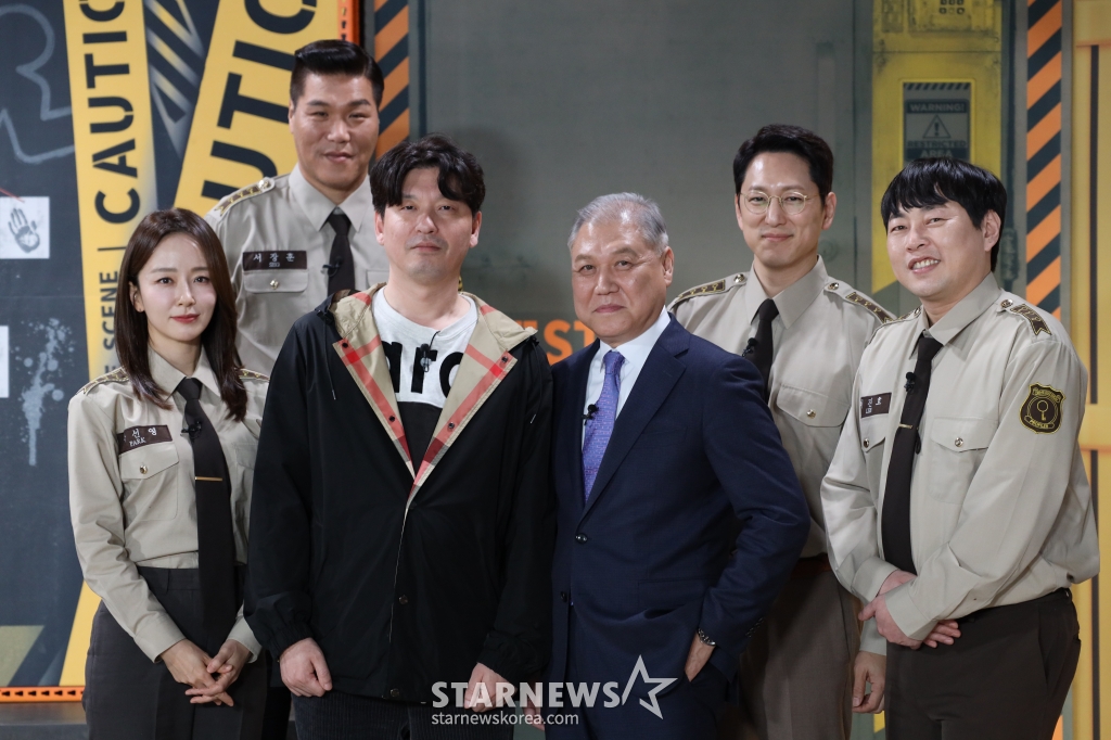 황교순 CP( 왼쪽 세번재), 방송인 박선영, 서장훈, 권일용, 한석준, 이진호가 28일 오후 온라인으로 진행된 AXN의 예능 '풀어파일러 4' 제작발표회에 참석해 포즈를 취하고 있다.