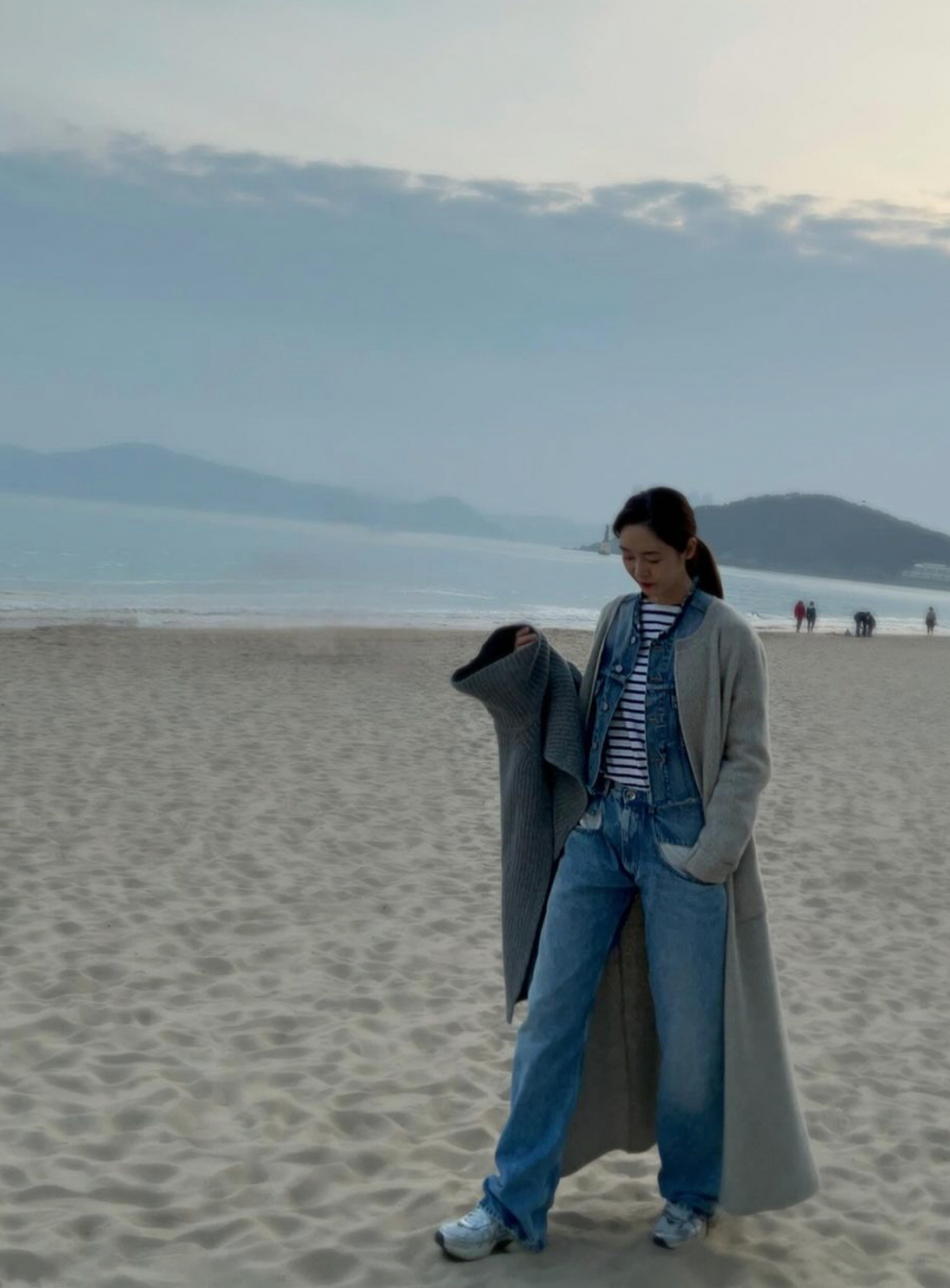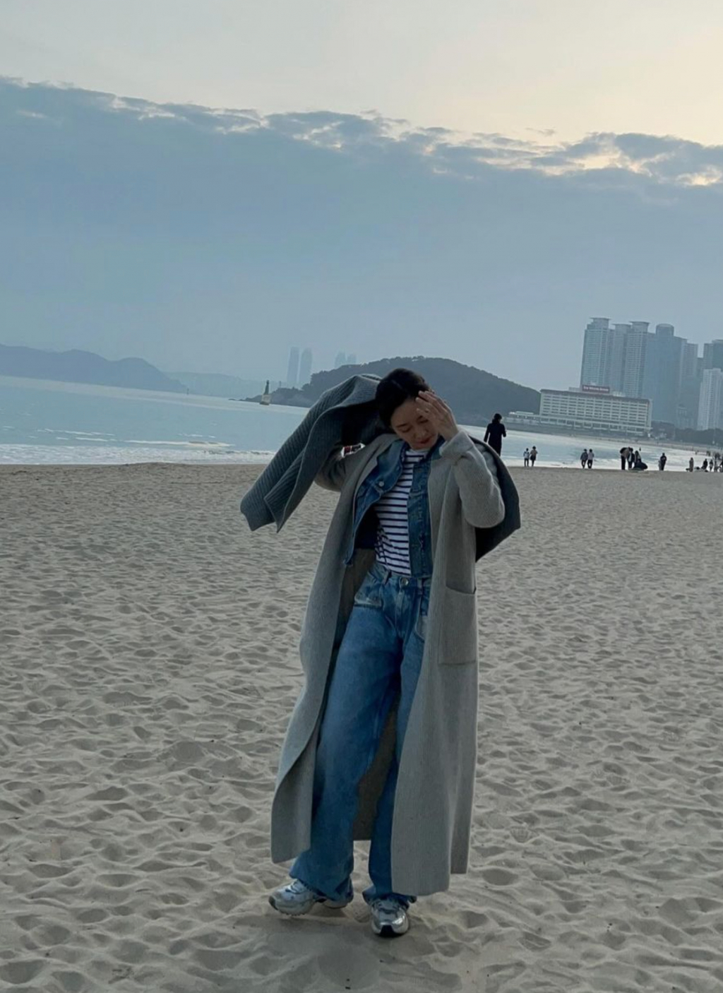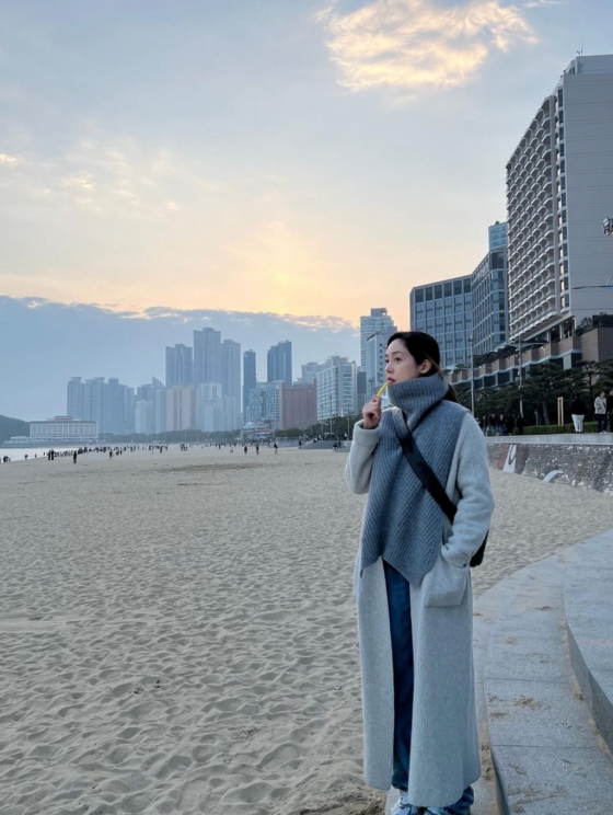성유리는 29일 근황 사진을 통해 부산 해운대 바다를 걷고 있는 모습을 공개했다.
