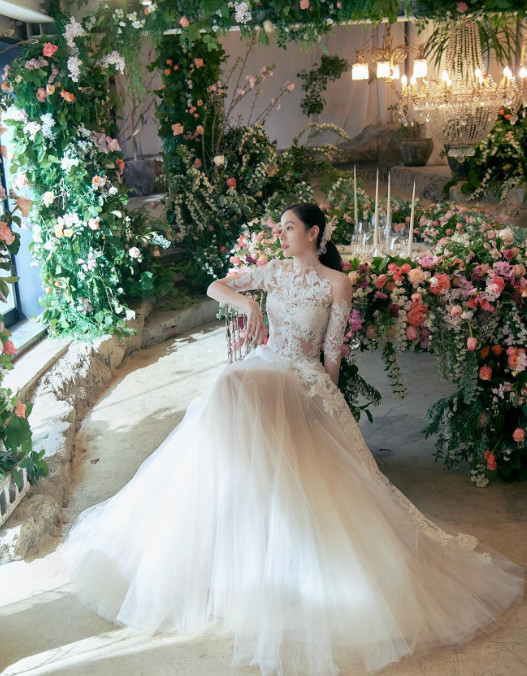 공개된 사진 속엔 우아한 느낌을 담은 웨딩 화보가 담겨있다. 두 사람이 착용한 흰색 드레스와 정장에서 고급스러운 분위기가 돋보인다.