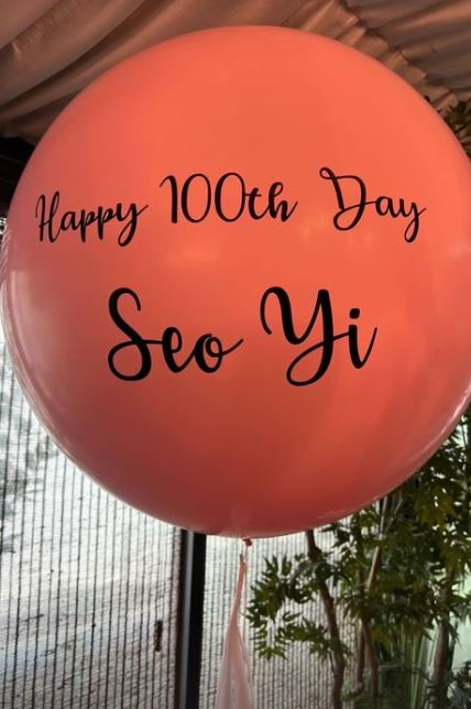 이민정은 1일 "벌써 백일"이라며 딸 서이 양의 백일을 맞이했음을 알리고 핑크 리본이 곁들여진 카드와 커다란 풍선, 꽃다발 등도 공개했다.