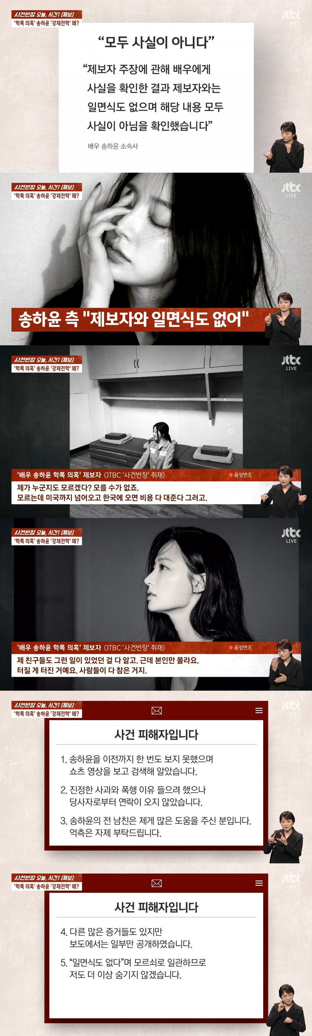 2일 오후 JTBC '사건반장'은 전날에 이어 송하윤의 학폭 제보자는 물론, 피해자와 가해자를 모두 만나 인터뷰를 진행했다.
