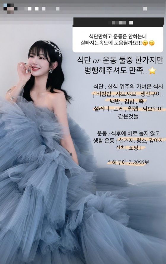 앞서 최준희는 과거 자신의 모습과 현재 모습을 나란히 공개하기도 했다. 최준희는 "식단 or 운동 둘중 한가지만 병행해주셔도 만족"이라고 적고 자신의 식단과 운동 루틴도 공개했다.