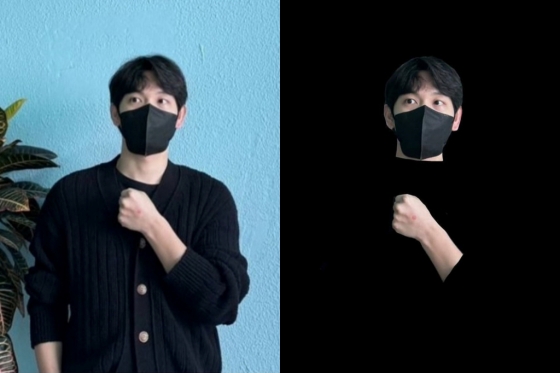 공개된 사진 속 임시완은 검은색 마스크, 검은색 옷을 착용하고, 기표 도장이 찍힌 손등을 보이며 포즈를 취하고 있다.